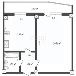 Апартаменты в черновой отделке от застройщика. Готовы под ваш индивидуальный ремонт. Площадь апартаментов 43,9 м2 состоят из отдельной комнаты и кухни, площадью 13,35 м2. Из кухни выход на балкон с которого открывается шикарный вид на море.