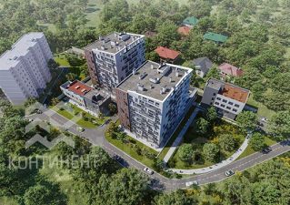 Планировка: Комплекс из двух 9-этажных домов и двух бизнес-зданий с семейной и индивидуальной квартирографией.