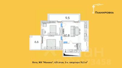 Площадь квартиры - 76,5 м², включая два балкона 15,7 м².