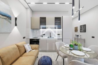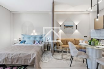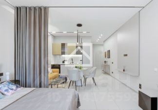В студии выполнен стильный современный ремонт в светлых тонах с особым вниманием к деталям, создающий гармоничное и уютное пространство. Она полностью оснащена премиальной Итальянской мебелью и техникой, формируя атмосферу комфорта и элегантности, идеально подходящую для жизни и отдыха.