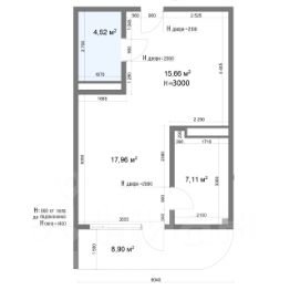 Апартамент находится на 2-м этаже 3-этажного здания. Общая площадь 53, 5 кв.м. Кухня занимает 15, 66 кв.м., спальня 7, 11 кв. м., гостиная 17, 96 кв.м., терраса 8, 90 кв.м.. Потолки 3.1 м., большие окна.