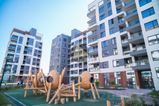 - В составе комплекса запроектированы школа и детский сад, обустроены игровые комплексы, приватные внутридворовые зоны, а также озеленение с системой автополива.