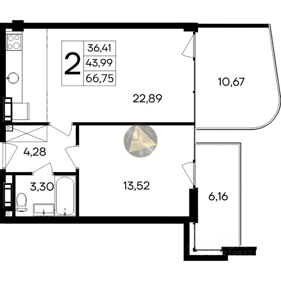 - Общая площадь квартиры 66.75 м2