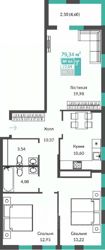 Продаётся 3-комнатная квартира в строящемся доме (Корпус 1), срок сдачи: II-кв. 2027, общей площадью 77.04 кв.м., на 6 этаже. Новый жилой комплекс "Единство" от застройщика "Монолит (Крым)" расположен по адресу Республика Крым, Симферопольский район, село Чистенькое