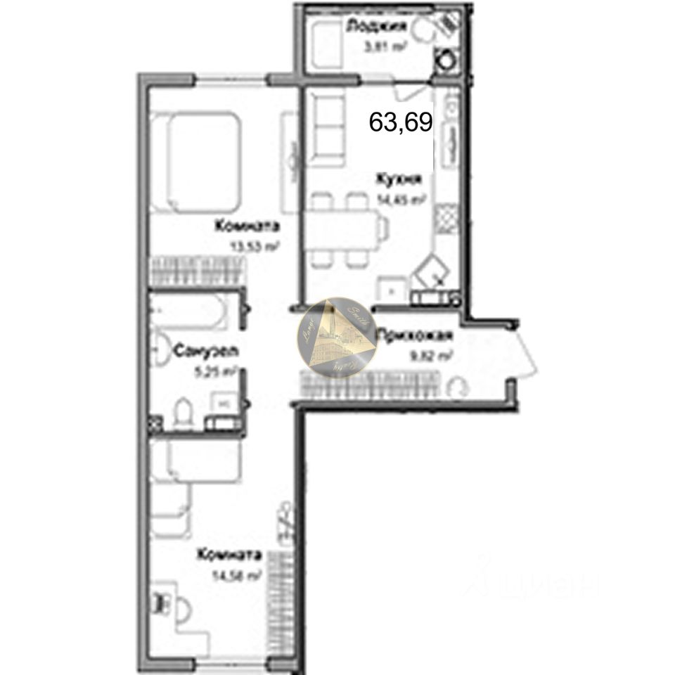 Срочно продаётся 2-комнатная квартира общей площадью 63,69 м2 в