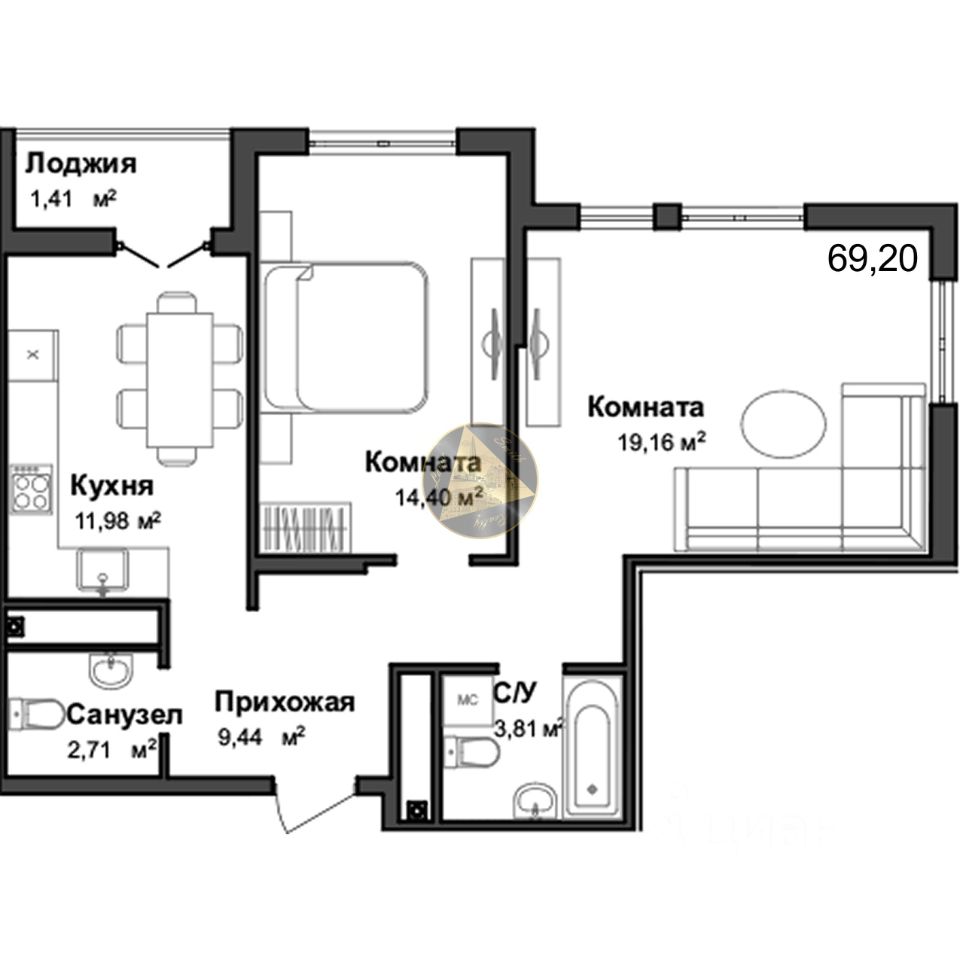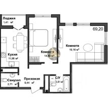 Срочно продаётся 2-комнатная квартира общей площадью 69.20 м2 в