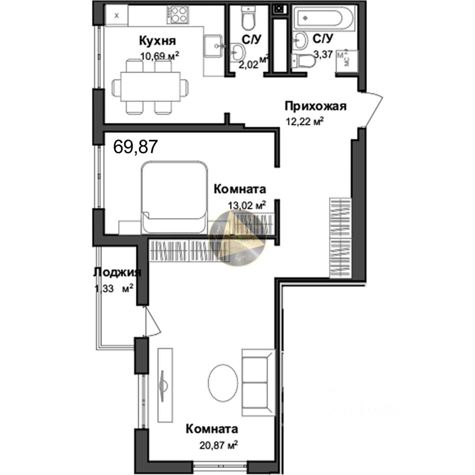 Срочно продаётся 2-комнатная квартира общей площадью 69.87 м2 в