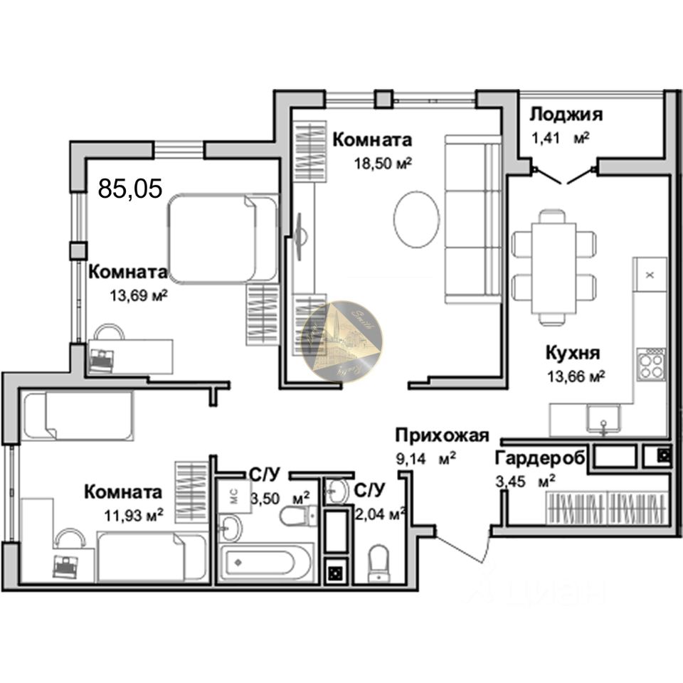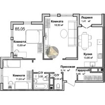 - Общая площадь квартиры 85.05 м2