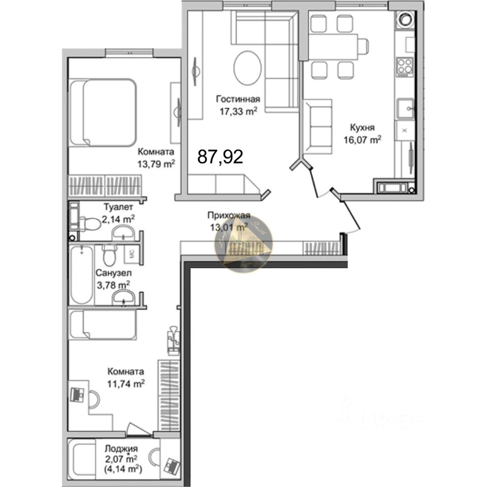 Срочно продаётся 3-комнатная квартира общей площадью 87,92 м2 в