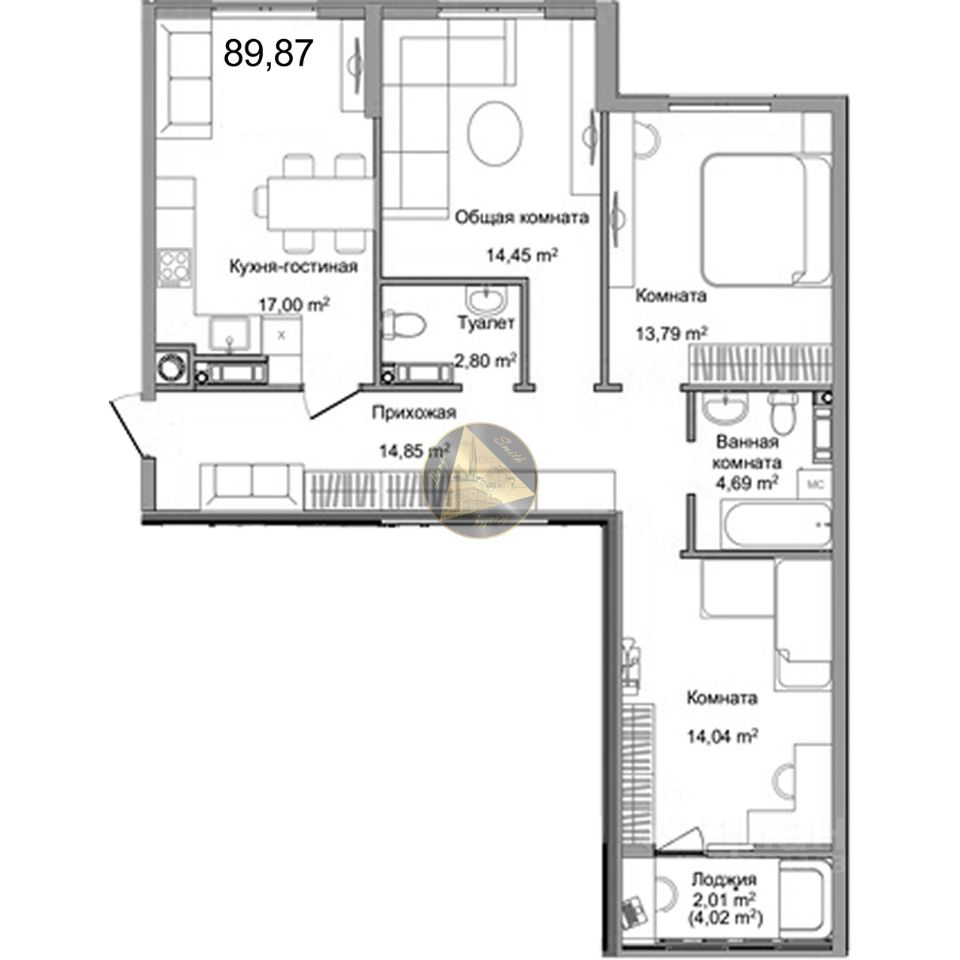 Срочно продаётся 3-комнатная квартира общей площадью 89,87 м2 в