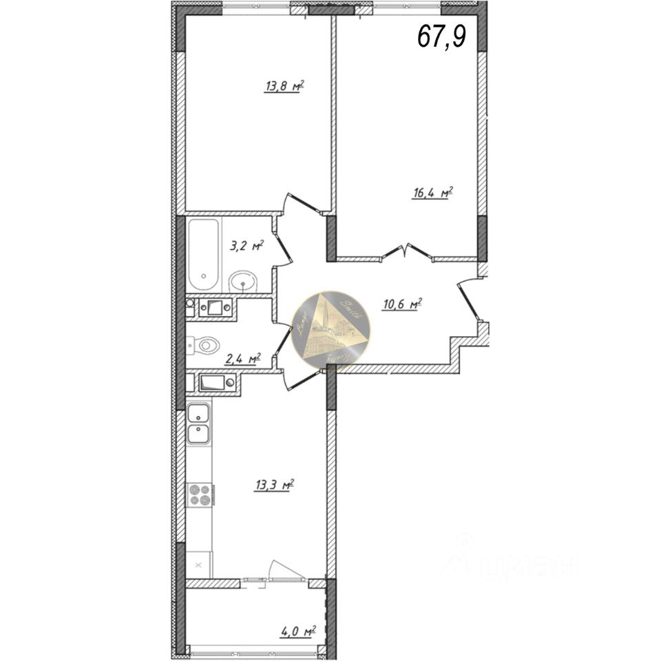 - Общая площадь квартиры 67.9 м2