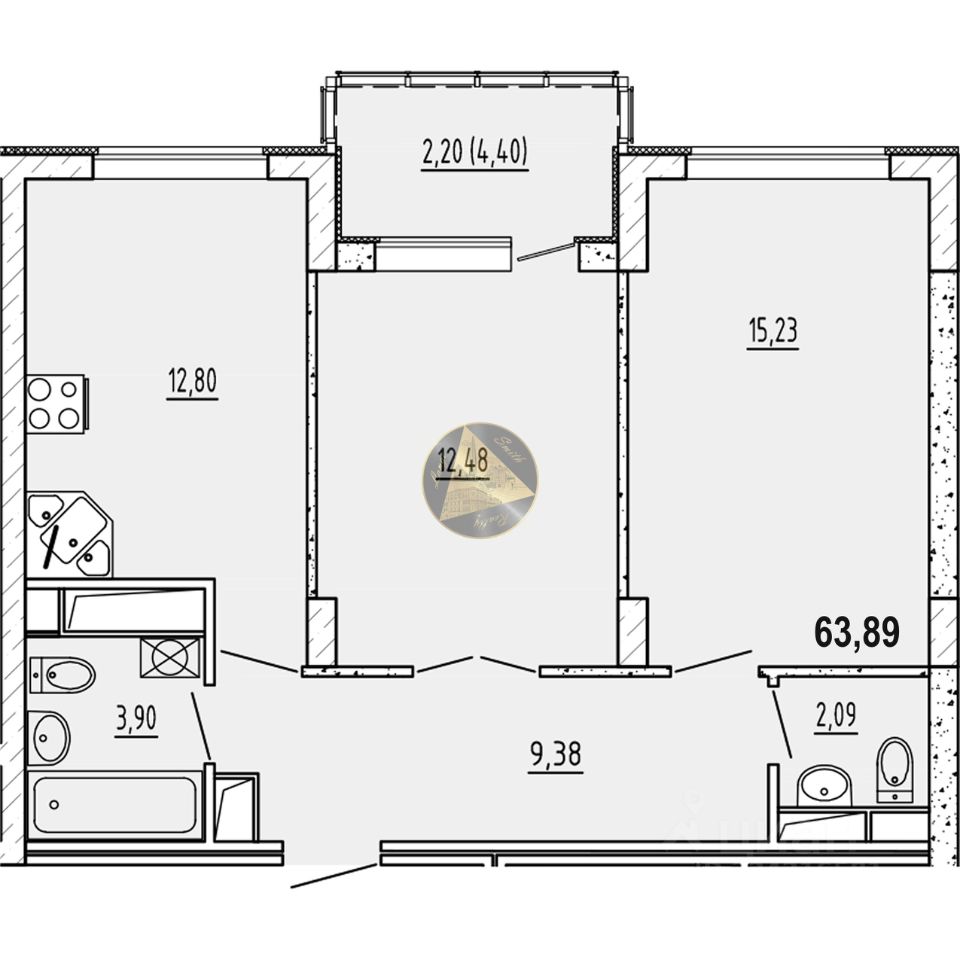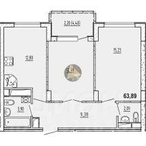Срочно продаётся 2-комнатная квартира общей площадью 63,89 м2