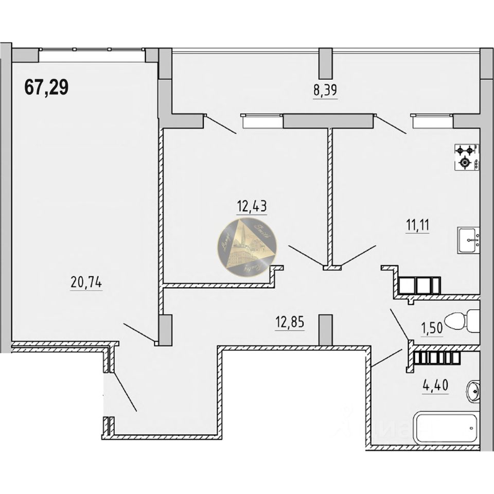 Срочно продаётся 2-комнатная квартира общей площадью 67,29 м2
