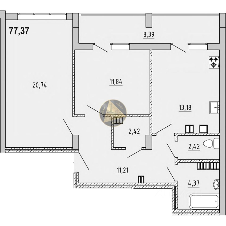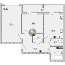 Срочно продаётся 2-комнатная квартира общей площадью 77,37 м2