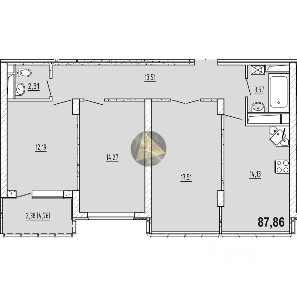 - Общая площадь квартиры 87.86 м2
