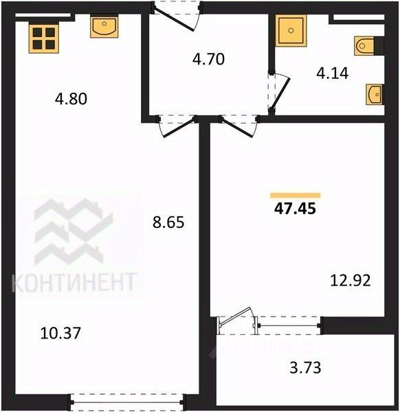 Продается 1к.кв 49,58 кв.м на 6/8 этаже
