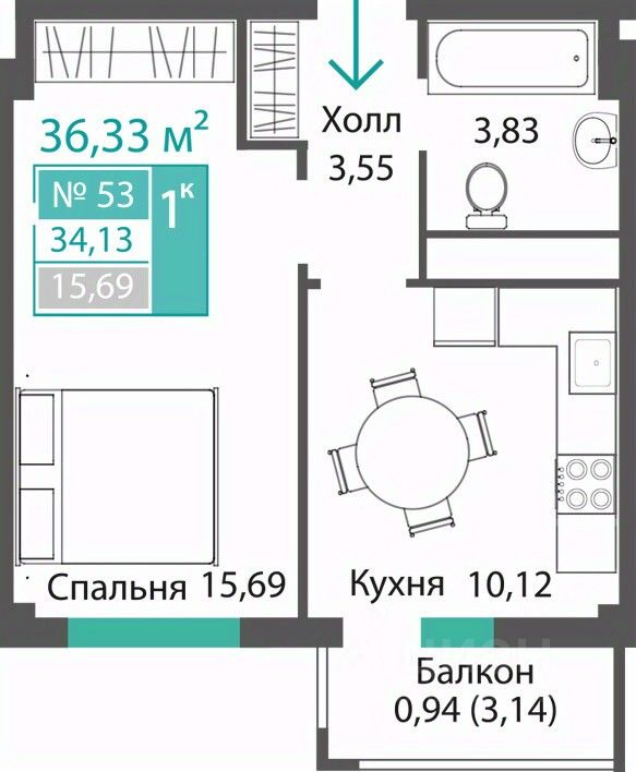 Продаётся 1-комнатная квартира в строящемся доме (ЭТАП 1, СЕКЦИИ А1, А2, А3), срок сдачи: III-кв. 2028, общей площадью 34.13 кв.м., на 4 этаже. Новый жилой комплекс "Семейный квартал ПРОПОЛИС" от застройщика "Монолит" расположен по адресу: Республика Крым, Симферопольский район, с. Мирное, ул. Учительская
