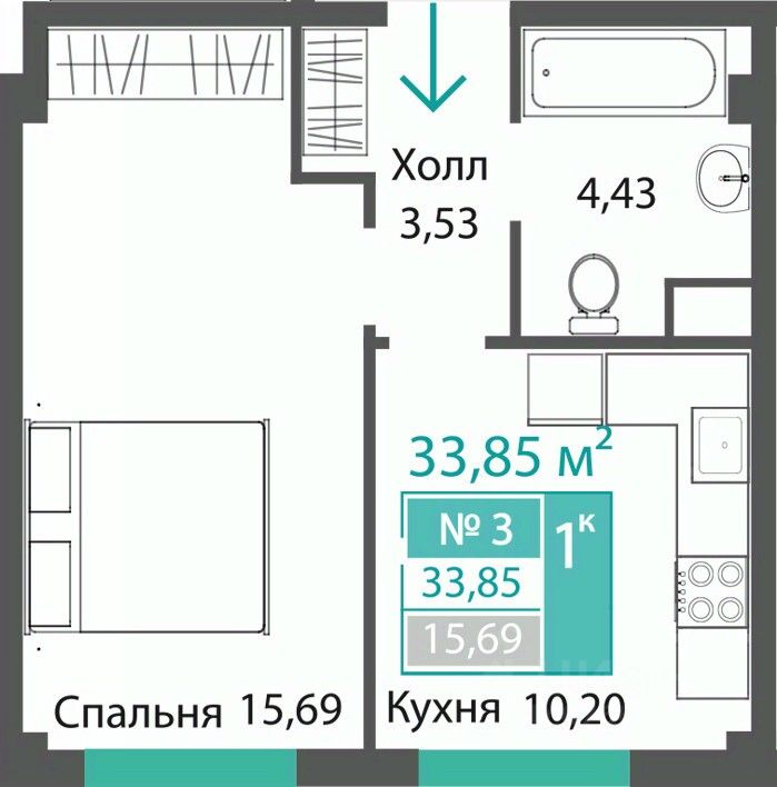Продаётся 1-комнатная квартира в строящемся доме (ЭТАП 1, СЕКЦИИ А1, А2, А3), срок сдачи: III-кв. 2028, общей площадью 33.85 кв.м., на 1 этаже. Новый жилой комплекс "Семейный квартал ПРОПОЛИС" от застройщика "Монолит" расположен по адресу: Республика Крым, Симферопольский район, с. Мирное, ул. Учительская