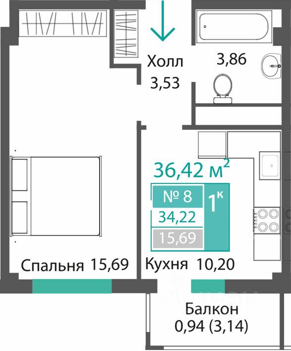 Продаётся 1-комнатная квартира в строящемся доме (ЭТАП 1, СЕКЦИИ А1, А2, А3), срок сдачи: III-кв. 2028, общей площадью 34.22 кв.м., на 2 этаже. Новый жилой комплекс "Семейный квартал ПРОПОЛИС" от застройщика "Монолит" расположен по адресу: Республика Крым, Симферопольский район, с. Мирное, ул. Учительская