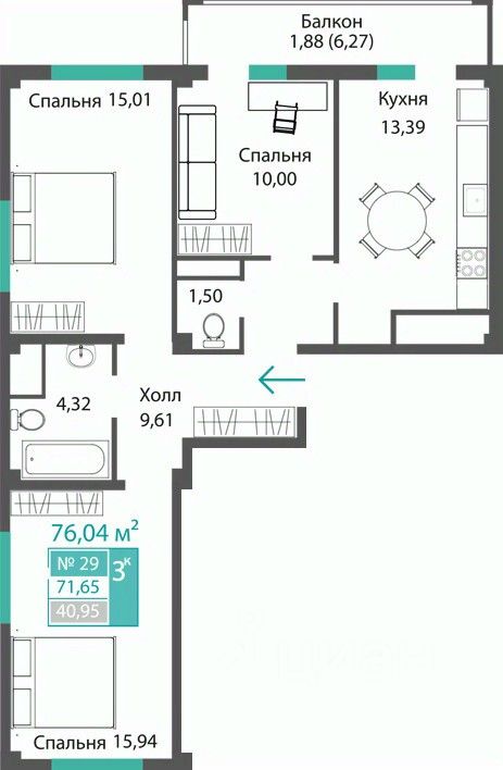 Продаётся 3-комнатная квартира в строящемся доме (ЭТАП 1, СЕКЦИИ А1, А2, А3), срок сдачи: III-кв. 2028, общей площадью 71.65 кв.м., на 6 этаже. Новый жилой комплекс "Семейный квартал ПРОПОЛИС" от застройщика "Монолит" расположен по адресу: Республика Крым, Симферопольский район, с. Мирное, ул. Учительская