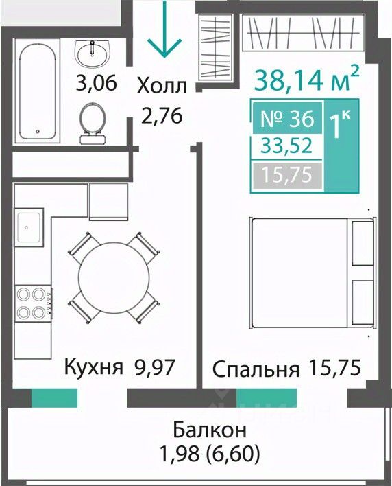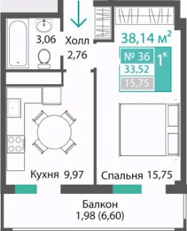 33,52 м²
