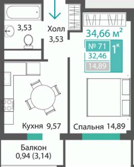 Продаётся 1-комнатная квартира в строящемся доме (ЭТАП 1, СЕКЦИИ А1, А2, А3), срок сдачи: III-кв. 2028, общей площадью 32.46 кв.м., на 7 этаже. Новый жилой комплекс "Семейный квартал ПРОПОЛИС" от застройщика "Монолит" расположен по адресу: Республика Крым, Симферопольский район, с. Мирное, ул. Учительская