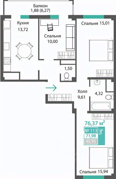Продаётся 3-комнатная квартира в строящемся доме (ЭТАП 1, СЕКЦИИ А1, А2, А3), срок сдачи: III-кв. 2028, общей площадью 71.98 кв.м., на 8 этаже. Новый жилой комплекс "Семейный квартал ПРОПОЛИС" от застройщика "Монолит" расположен по адресу: Республика Крым, Симферопольский район, с. Мирное, ул. Учительская