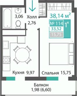 Продаётся 1-комнатная квартира в строящемся доме (ЭТАП 1, СЕКЦИИ А1, А2, А3), срок сдачи: III-кв. 2028, общей площадью 33.52 кв.м., на 8 этаже. Новый жилой комплекс "Семейный квартал ПРОПОЛИС" от застройщика "Монолит" расположен по адресу: Республика Крым, Симферопольский район, с. Мирное, ул. Учительская