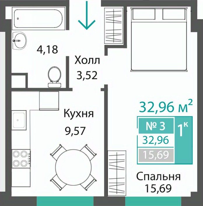 Продаётся 1-комнатная квартира в строящемся доме (ЭТАП 1, СЕКЦИИ А1, А2, А3), срок сдачи: III-кв. 2028, общей площадью 32.96 кв.м., на 1 этаже. Новый жилой комплекс "Семейный квартал ПРОПОЛИС" от застройщика "Монолит" расположен по адресу: Республика Крым, Симферопольский район, с. Мирное, ул. Учительская