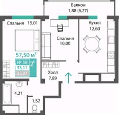 Продаётся 2-комнатная квартира в строящемся доме (ЭТАП 1, СЕКЦИИ А1, А2, А3), срок сдачи: III-кв. 2028, общей площадью 53.11 кв.м., на 2 этаже. Новый жилой комплекс "Семейный квартал ПРОПОЛИС" от застройщика "Монолит" расположен по адресу: Республика Крым, Симферопольский район, с. Мирное, ул. Учительская