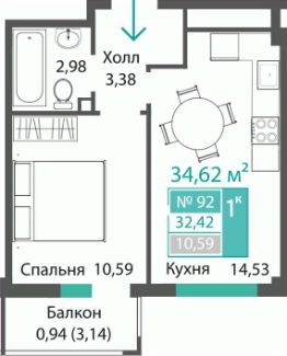 Продаётся 1-комнатная квартира в строящемся доме (ЭТАП 1, СЕКЦИИ А1, А2, А3), срок сдачи: III-кв. 2028, общей площадью 32.42 кв.м., на 8 этаже. Новый жилой комплекс "Семейный квартал ПРОПОЛИС" от застройщика "Монолит" расположен по адресу: Республика Крым, Симферопольский район, с. Мирное, ул. Учительская