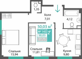Продаётся 2-комнатная квартира в строящемся доме (ЭТАП 2, СЕКЦИИ Б1, Б2, Б3, Б4), срок сдачи: III-кв. 2028, общей площадью 50.03 кв.м., на 1 этаже. Новый жилой комплекс "Семейный квартал ПРОПОЛИС" от застройщика "Монолит" расположен по адресу: Республика Крым, Симферопольский район, с. Мирное, ул. Учительская