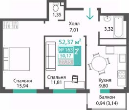 Продаётся 2-комнатная квартира в строящемся доме (ЭТАП 2, СЕКЦИИ Б1, Б2, Б3, Б4), срок сдачи: III-кв. 2028, общей площадью 50.17 кв.м., на 4 этаже. Новый жилой комплекс "Семейный квартал ПРОПОЛИС" от застройщика "Монолит" расположен по адресу: Республика Крым, Симферопольский район, с. Мирное, ул. Учительская