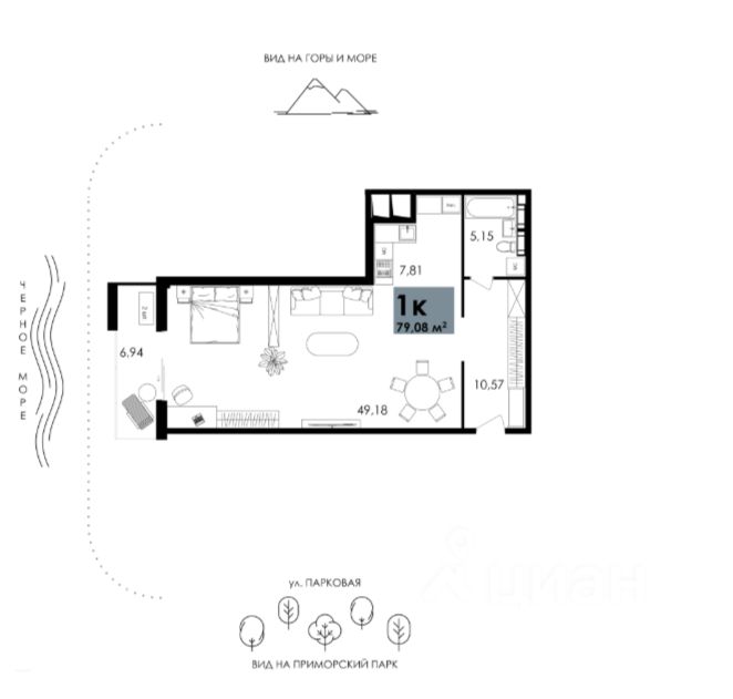 Продаются апартаменты общей площадью 79.65 м2 в премиальной южной резиденции "Park Plaza" в самом сердце Алушты.