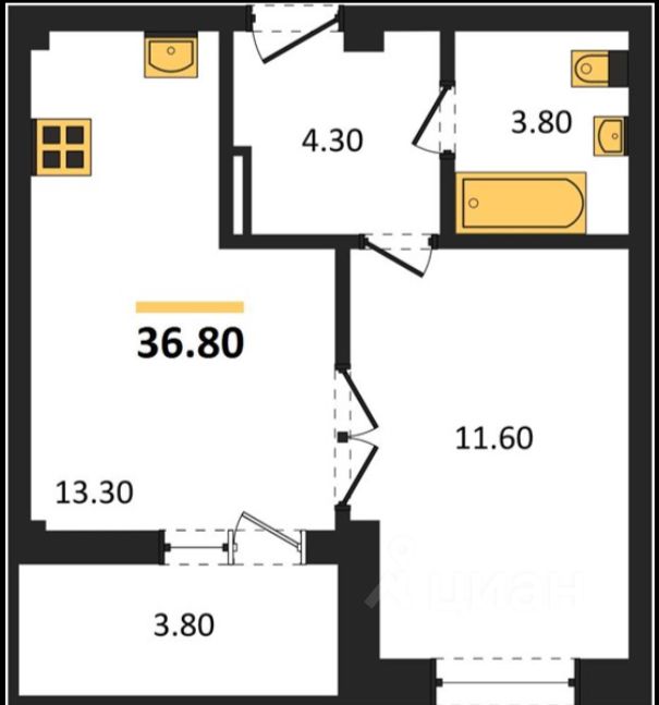 Общая площадь36,8 м²