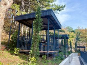 Архитектура комплекса состоит из трех четырехэтажных здания . Всего 185 квартир различной площади и планировки с шикарными видовыми характеристиками: на зубцы Ай-Петри, море и лес.