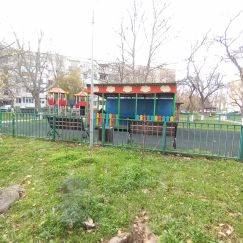 Придомовая территория обустроенная: беседки, детские площадки, спортивная площадка с тренажерами, волейбольная площадка, есть места для парковки.