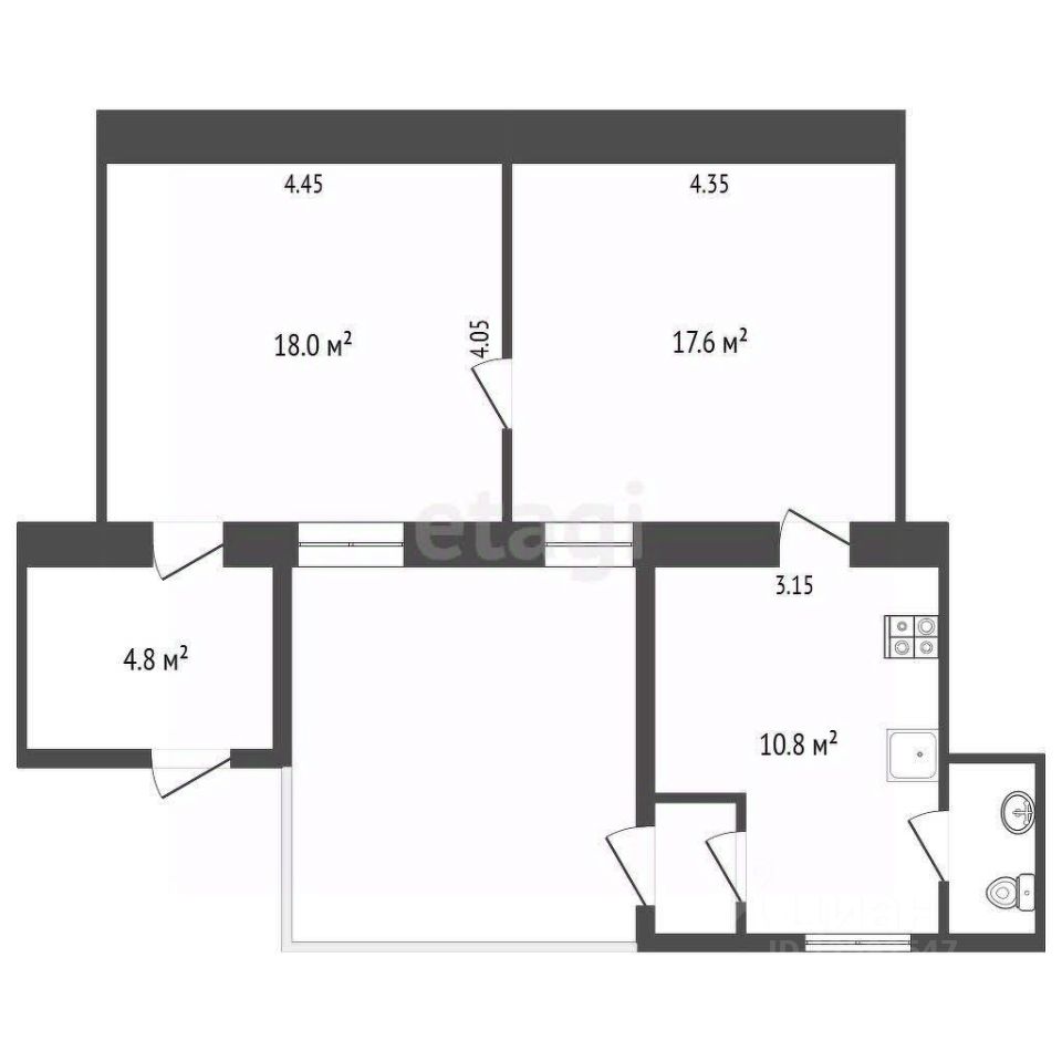 Общая площадь 66.8 кв.м., кухня-гостиная 10.8 кв.м., совмещенный санузел. В квартире сделан качественный ремонт с использованием дорогостоящих материалов и техники.