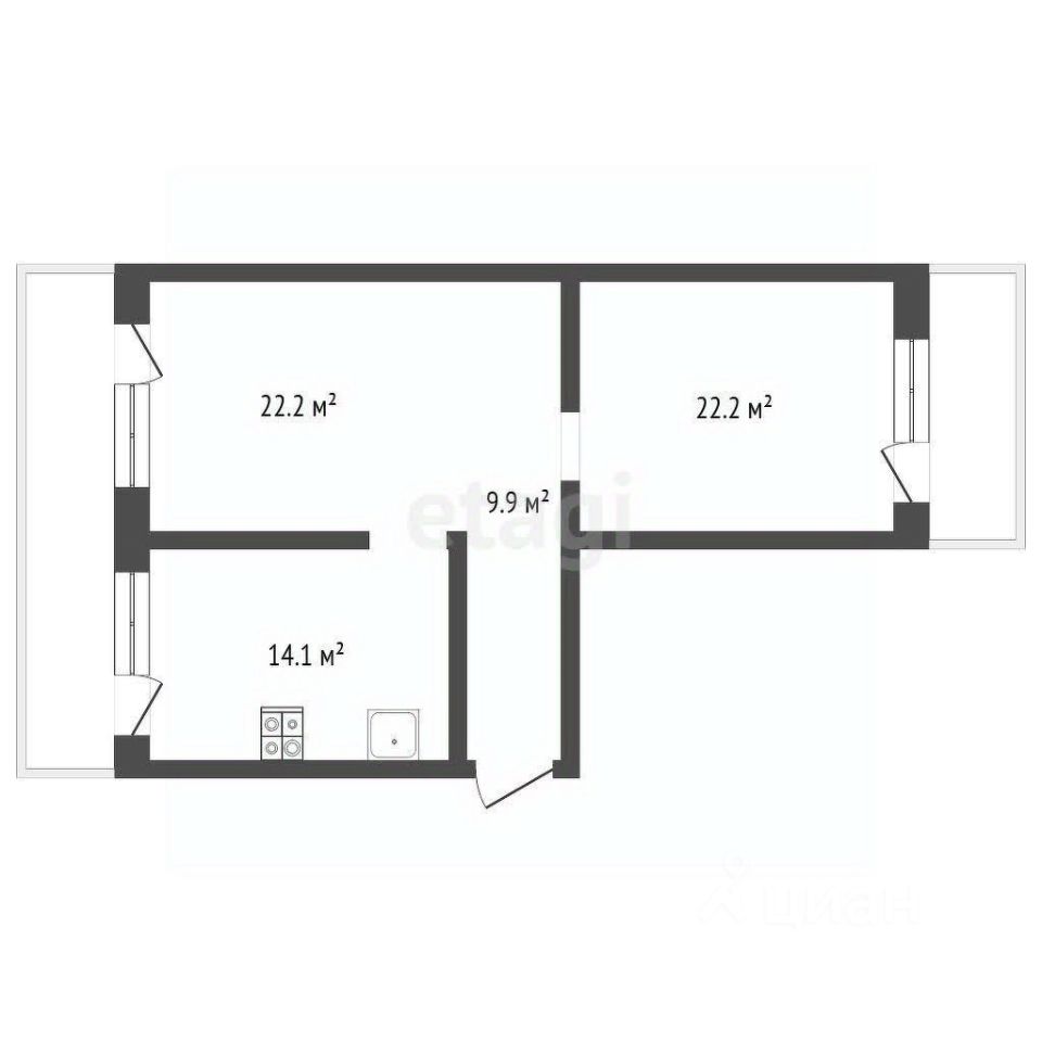 Планировочное решение с комнатами, ориентированными на две стороны света, обеспечивает постоянное естественное освещение и эффективную циркуляцию воздуха.
