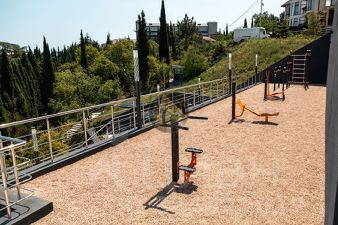 - Для резидентов на территории предусмотрены открытый инфинити-бассейн с аква-баром, детский бассейн, воркаут-зоны, роллердром, скалодром, памп-трек, велосипедные и беговые дорожки, поле для мини-футбола и волейбола, зоны барбекю, лаунж-зоны, смотровая площадка и амфитеатр.