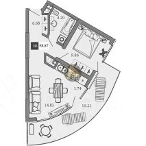 - Общая площадь квартиры 58.87 м2