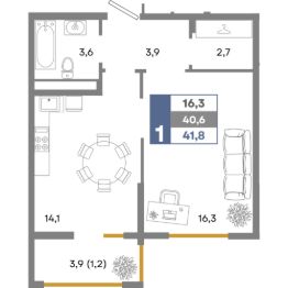Общая площадь41,8 м²