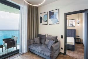 Элегантные апартаменты с изысканной отделкой. Балкон с завораживающим видом на море, премиальная техника и дизайнерская мебель — всё продумано для вашего безупречного комфорта и утончённого образа жизни.