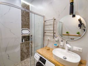 Галечный пляж с чистой водой, большая береговая линия, ухоженная набережная. Рядом с комплексом находятся два парка. Парк Айвазовского и Карасанский парк.