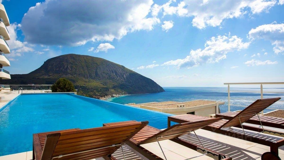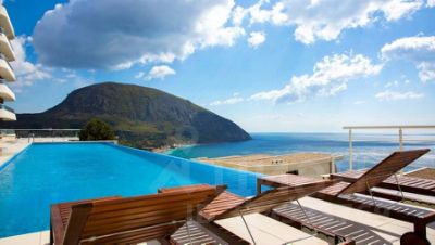Апартамент с потрясающим видом на море, а также ярким преимуществом является выход на террасу, где можно наслаждаться теплой водой в бассейне и принимать солнечные ванны.