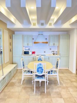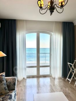 Апартаменты Сон у Моря на первой береговой линии территории отеля Пальмира Палас площадью 70 кв.м. оформлены в светлых, воздушных тонах с дизайнерским ремонтом, создавая атмосферу уюта и стиля.