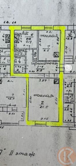 В квартире две изолированные комнаты - 21,5 м2 и 9,8 м2 соответственно. Просторный коридор, совмещенный санузел, кухня 6,8 м2. Есть место под встроенный шкаф или увеличение площади для кухни-студии.