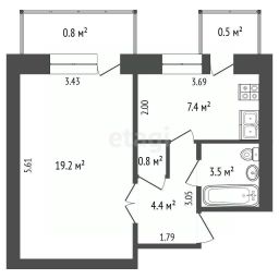 Просторная жилая комната: 19,2 кв.м с выходом на балкон.