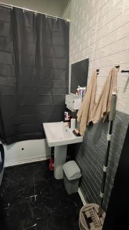 В квартире есть газовая колонка, кондиционер, санузел совмещённый.