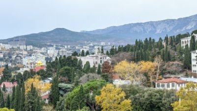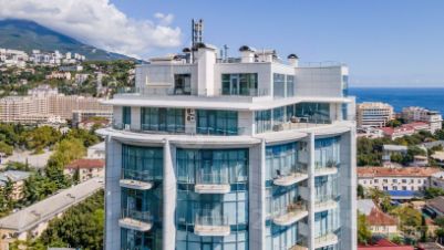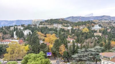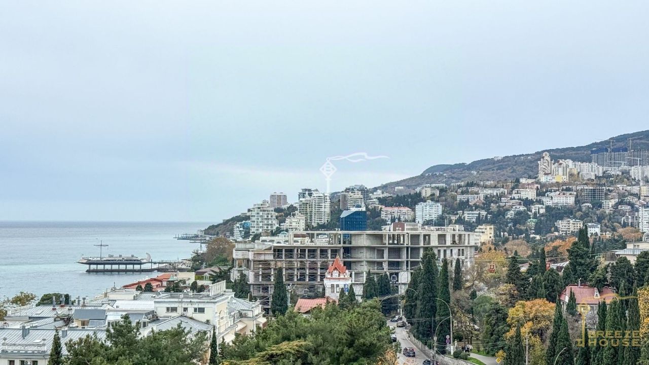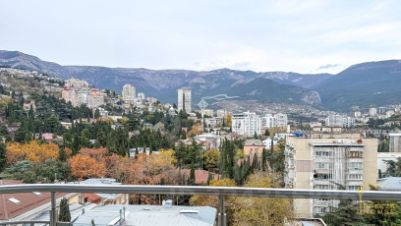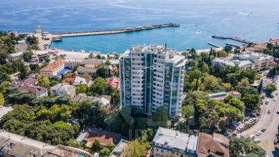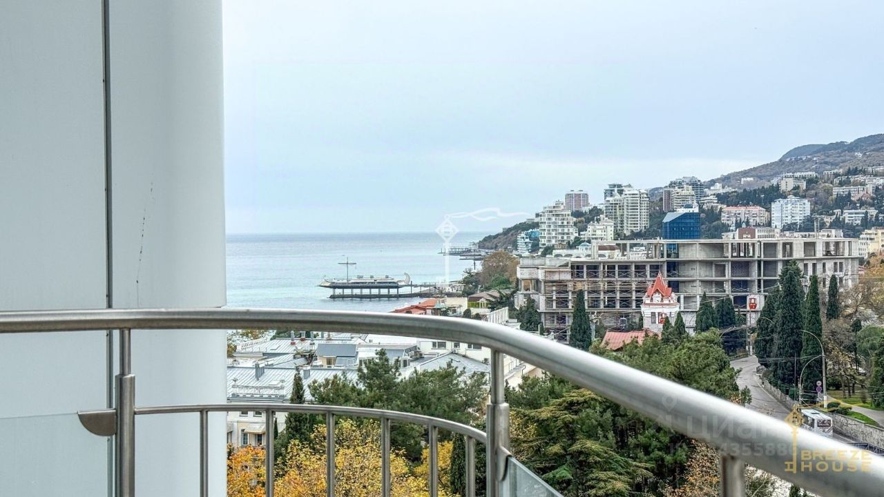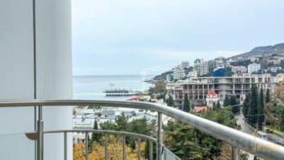 Квартира расположена на 9 этаже 14-этажного здания и имеет два балкона с видом на море, Ялтинскую бухту, горы и город.